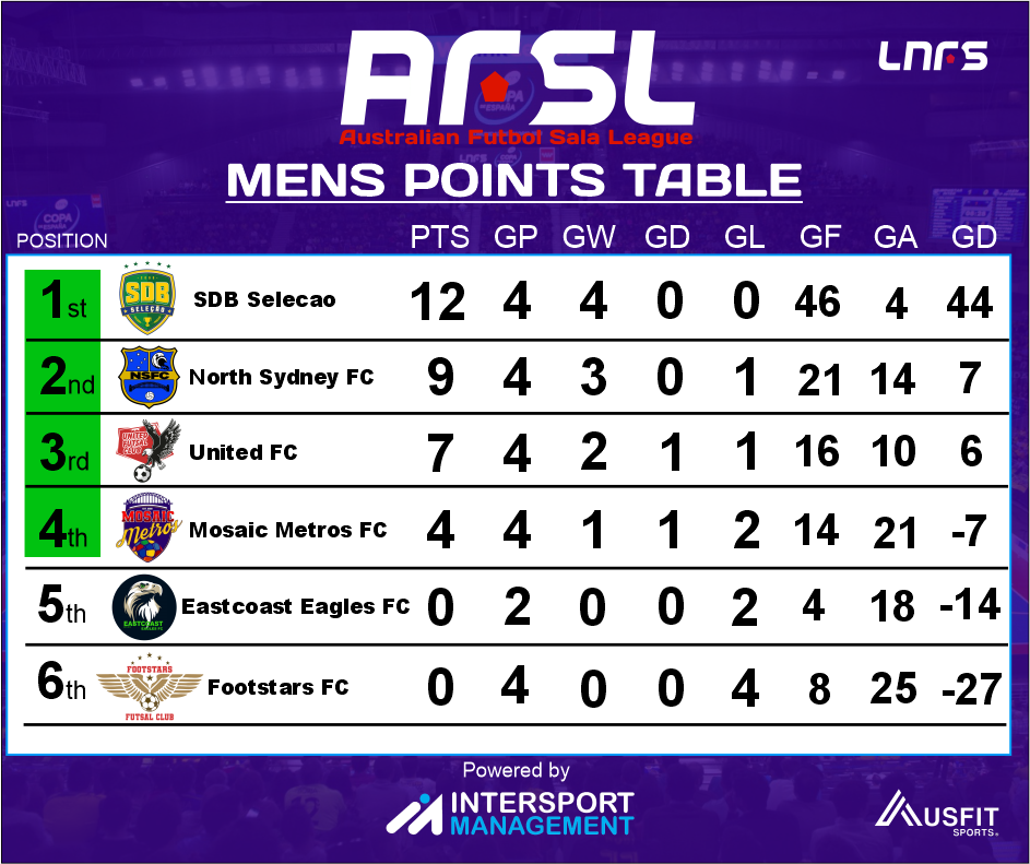 After four exciting rounds of the AFSL, the leader board remains unchanged, with SDB Selecao still holding the top spot